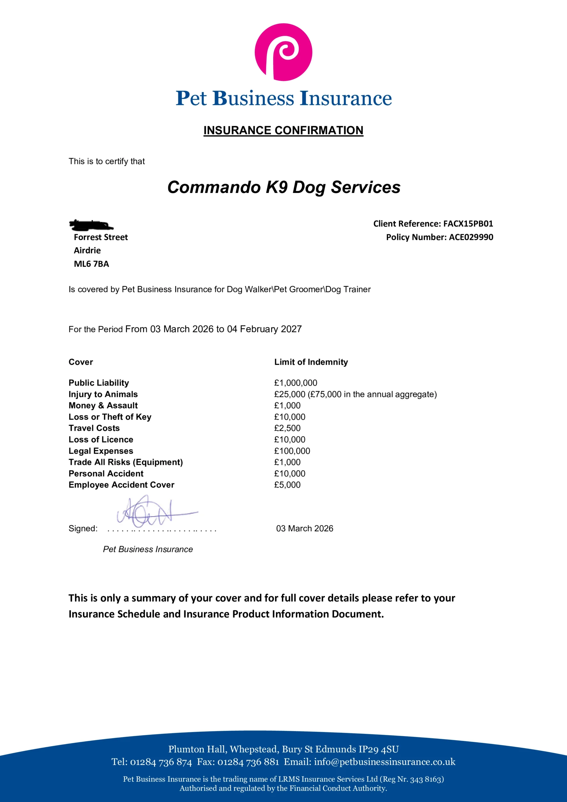 Yes. I am fully insured for dog walking and grooming, hold professional grooming qualifications, have a disclosure check in place, and am trained in canine first aid.